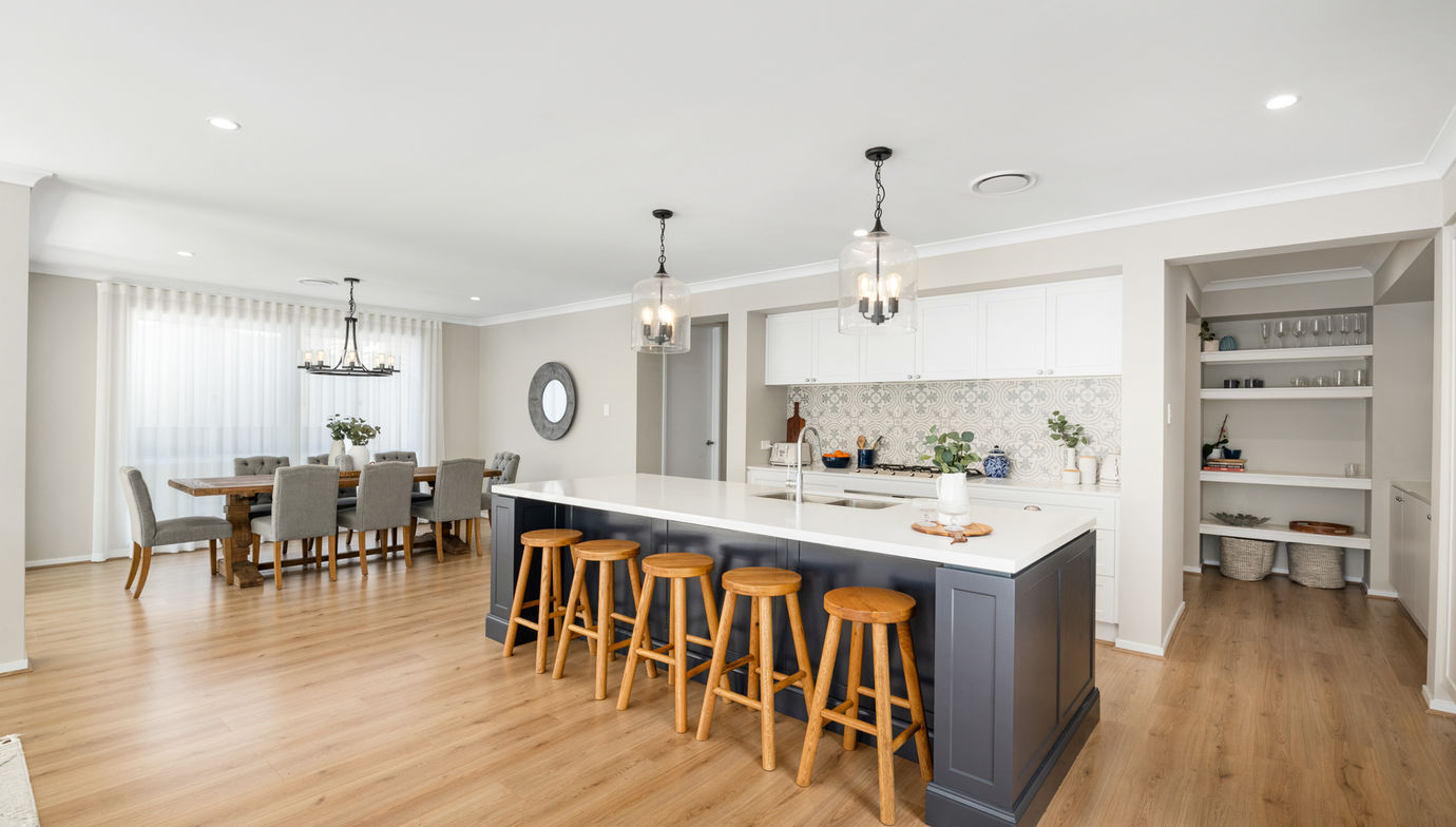 The ground level of this home is a showcase of opulence, boasting a spacious open-plan living and dining area adorned with feature lighting and a spectacular double height stairwell. Flowing seamlessly from the welcoming entry, this central space connects to an exceptional kitchen equipped with a breakfast bar, stone benchtops, an oversized butler's pantry, high-quality appliances and ample cupboard storage.